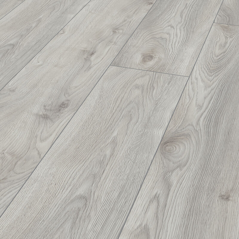 Mammut Plus 4793 Macro Oak White on tyylikkään vaaleanharmaa tammilaminaatti, jossa yhdistyvät rauhallisuus ja tamelle ominainen eloisuus. Yksisauvainen lankkukuosi tuo tilaan selkeää ryhtiä, ja vaihtelevat tummemmat sekä vaaleammat puunsyyt tuovat pintaan elävyyttä ilman suurta levottomuutta. Aidot puunsyykuviot ja hienovaraiset oksankohdat tekevät lattiasta luonnollisen näköisen. Laminaatin voimakas registered emboss -pintastruktuuri mukailee tarkasti kuviointia – voit tuntea esimerkiksi oksakohdat aivan kuin aidossa puulattiassa.